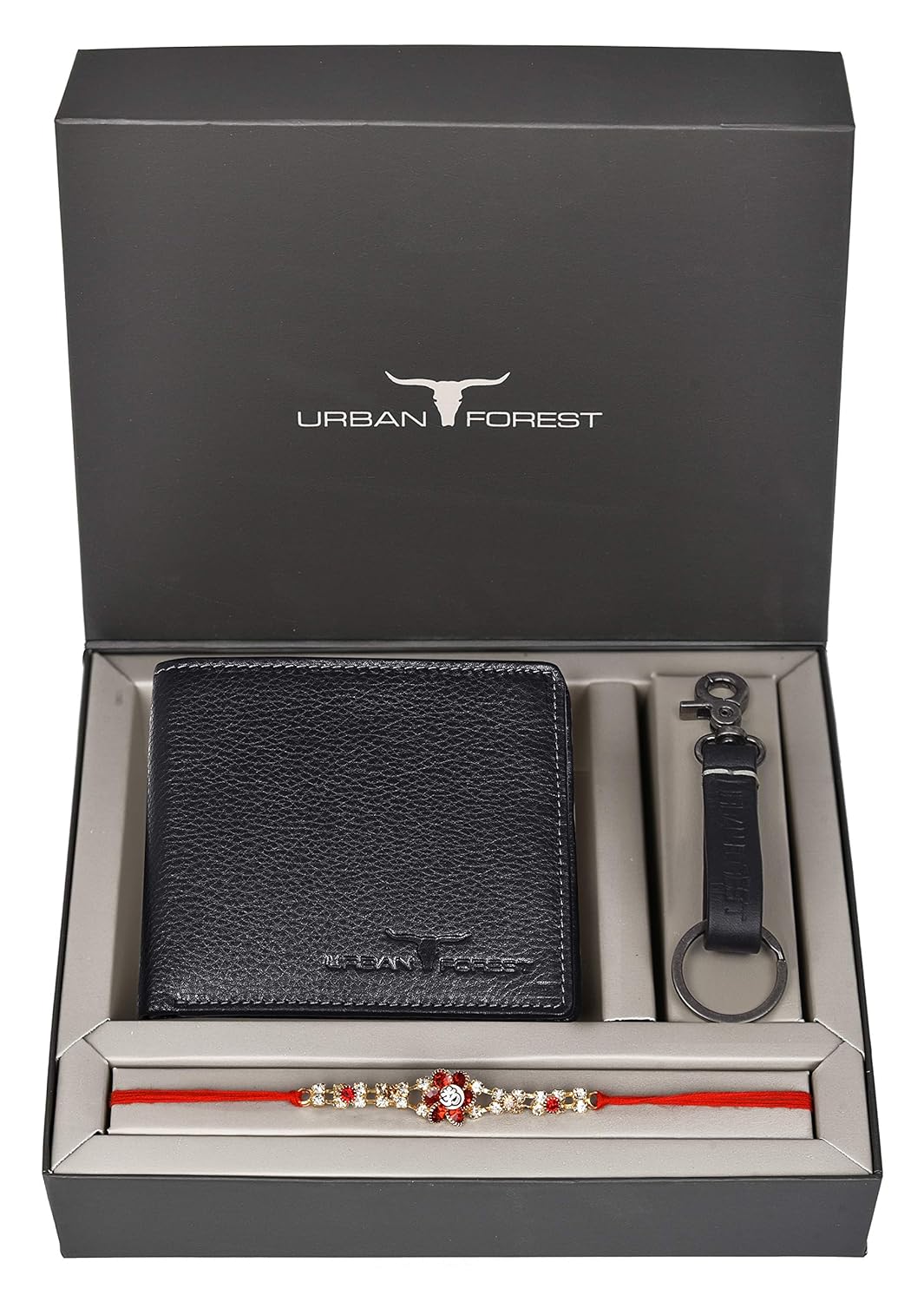 - RAKHI GIFT FOR BROTHER – Make this Raksha Bandhan Celebration Explicitly Love-Laden by bringing home for your brother, this Top Trending Sleek and Gorgeous Rakhi and Rakhi Hamper, Rakhi Combo Gift Sets by Urban Forest. This Rakhi Gift Box contains a Classic Leather Wallet for Men, a Cool Leather Keychain & a beautiful Red-Gold Rakhi.